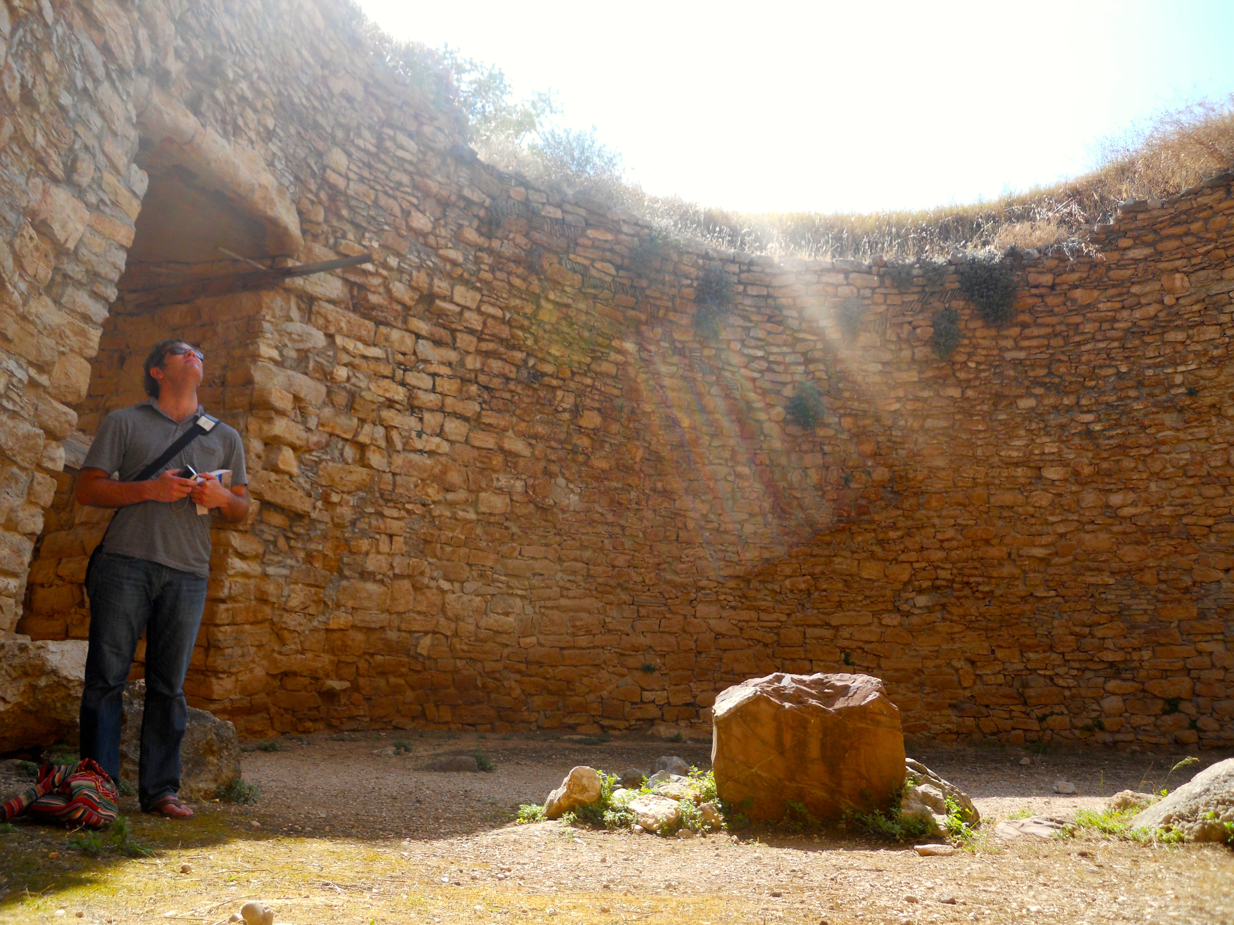 So at Mycenae, there are these three amazing old tombs, called tholos, one named for Atreus, the oldest and biggest, one for Clytemnestra, and one for Aegisthus, the first two of this last set of pictures are from the tomb of Clytemnestra and the last two are from the tomb of Aegisthus — the top fell in, so you can see the shape of it in a literally illuminating way. We don’t actually know whether the house of Atreus lived here, but the citadel at Mycenae points to a certain structure of community life whose conflicts Homer and the tragedians depict in a way that the 4th century Greek philosophers are still thinking about, and I suppose that means in a way that I’m still thinking about.