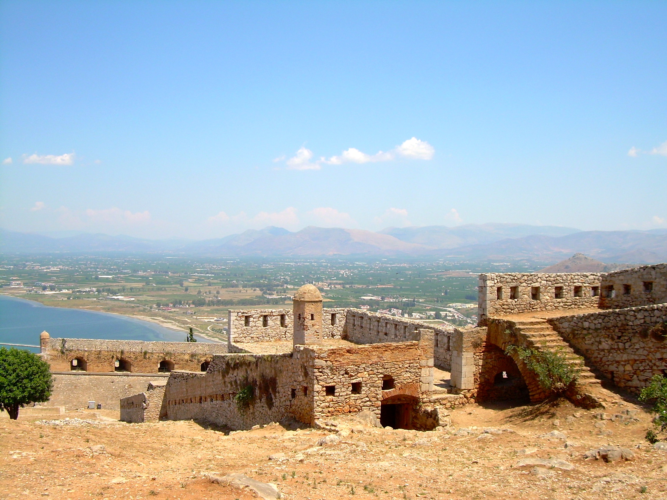 Sometimes it’s nice to just do some plain old sight-seeing and not think about how it fits into my understanding of ‘the Greeks.’ Last Saturday, we walked around Nafplion / Nauplion (Drop the ‘o’ if you so desire, no one seems to mind. Note that upsilons often become ‘f’ in modern Greek; find this particularly strange as a pronunciation of ‘autos,’ the ancient and modern Greek word for self). By walked, I mean climbed. And by around, I mean up. 999 steps lead up the Palamidi Fortress that we can see from our terrace. The steps begin about two tenths of a mile away. Legend has it that the the fortress / castle, which
