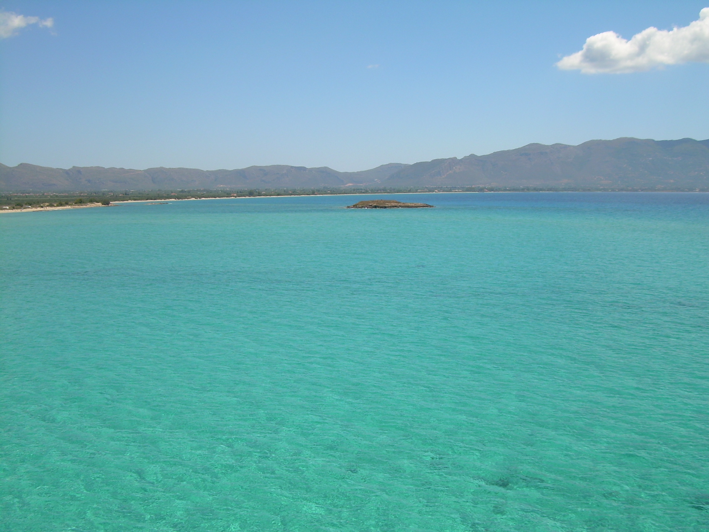 The next day we met up at the same cafe we first had drinks at, Cafe Maggiolino. Then we took a ferry across to Simos, an island just a little ways away from the coast. We passed this small little island around and under