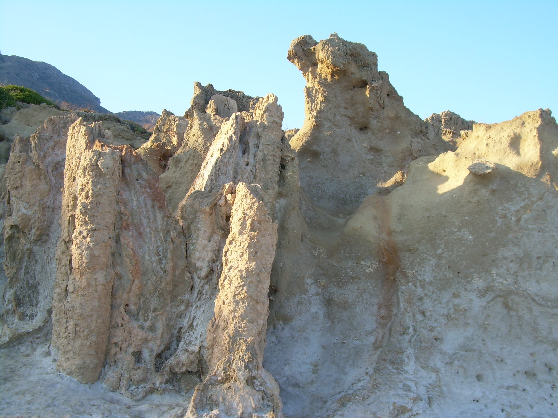 Late afternoon we took the ferry back to the mainland, went and cleaned up, and drove out to the petrified forest on the end of the peninsula. It seems that about two million years ago, the palm trees in this area were remarkably preserved by a petrifying process. As Jeff said, we’ve gone from columns of the classical period of Greece to the columns of really ancient Greece. Amongst the petrified trees were these deep holes in the ground that connected to the sea. Because of the suction between the upper air and the sea, they made these horrific monster noises that sounded like someone was down there. It wasn’t hard to see how people came up with ideas about sea monsters. I picked some wild oregano that I want to take back home with us.