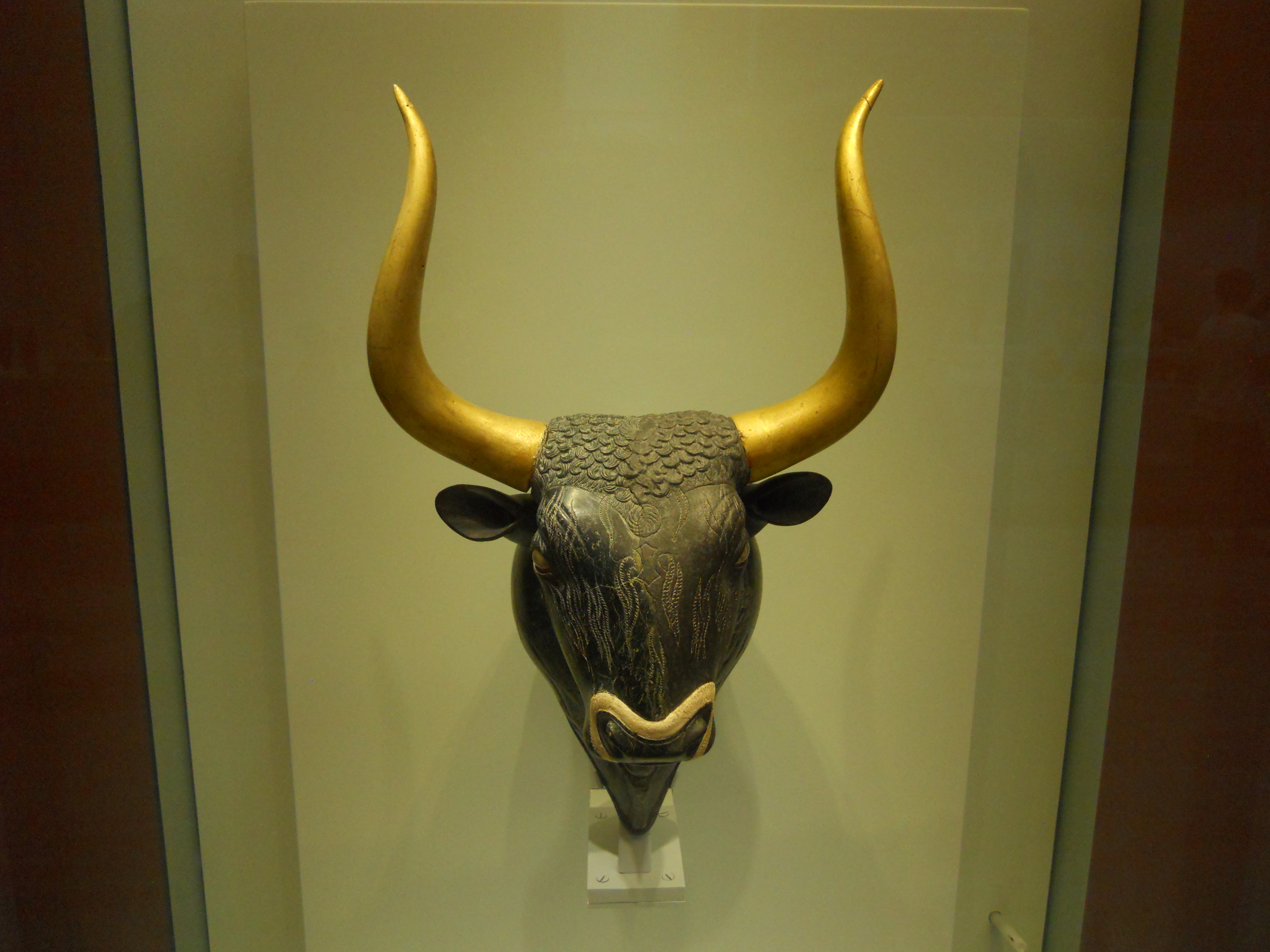 The Minotaur, Asterius, was the brother of Ariadne and Phaedra, the daughter of King Minos, for whom the Minoan civilization was named by Sir Arthur Evans in his turn-of-the-20th-century explorations of Knossos and its environs. Legend has it that Minos asked Poseidon for an animal to sacrifice when he became king of Crete and Poseidon offered a bull. Minos wanted the bull for himself because it was an amazing gift-from-Poseidon kind of bull, so he slaughtered another bull instead. Poseidon was not pleased. So he made Minos’s wife, Pasiphaë, fall in love with a bull. She was really into the bull, so she had the palace architect Daedalus (the guy who made tripods that could move on their own, constructed the labyrinth and who made wings for his son Icarus to fly too close to the sun) construct a wooden cow to wear so she could seduce the bull. One thing leads to another, and Pasiphaë gives birth to the Minotaur, half-man and half-bull.