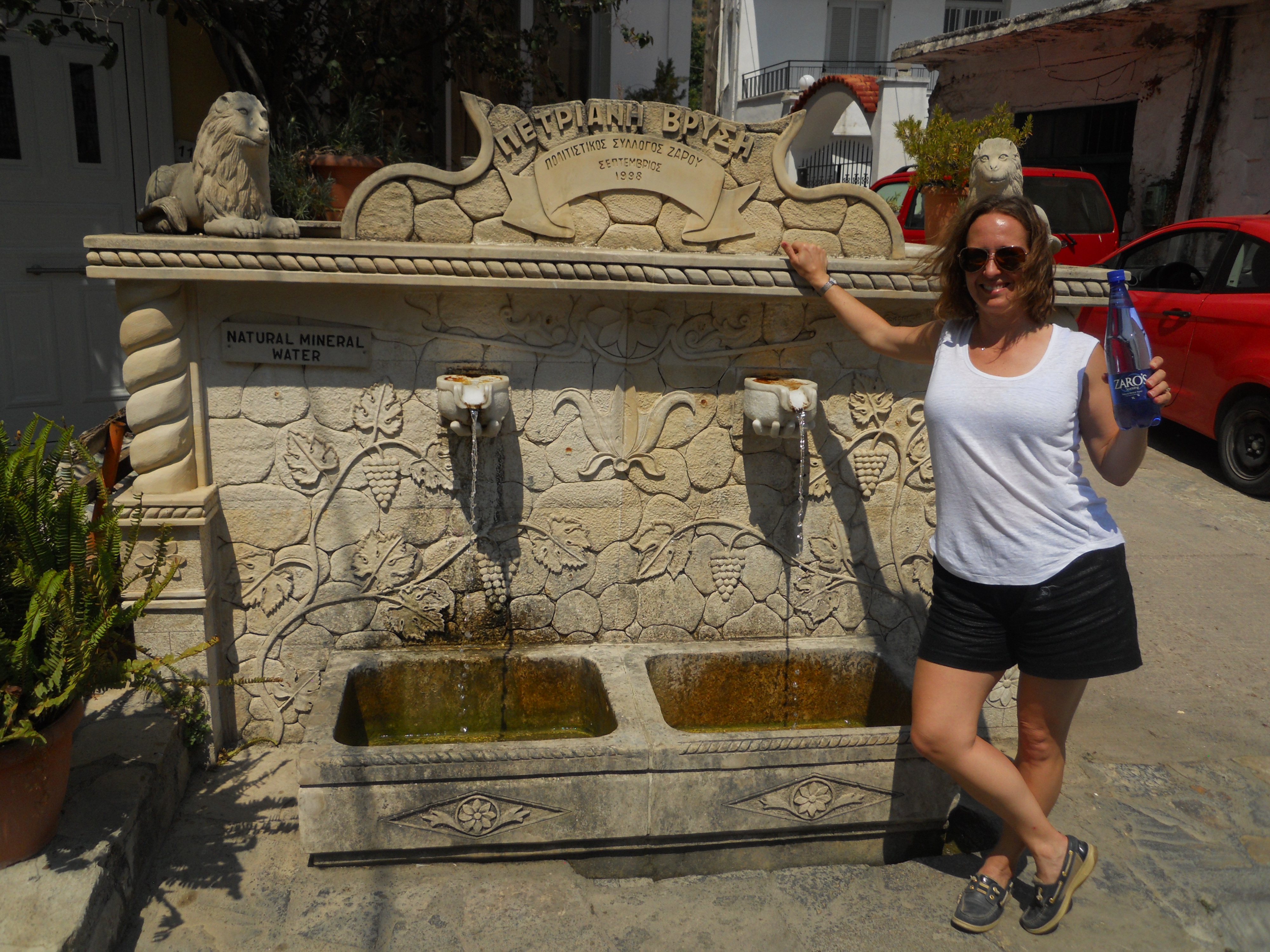 Yesterday, we made our way from Heraklion south to Archanes alongside Mount Juktas, the rumored site of Zeus’s burial. Then west to Zaros on the south side of Mount Ida, which is one of the rumored places of Zeus’s birth and early years (though we plan to see the actual site of his birth and rearing at Mount Diktaion in several days). Beware the windy roads for those who must read maps while riding in a car with less than iron stomachs.