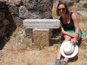 The image above is of the border stone in the Athenian agora. It reads, “I am the border stone of the agora.”