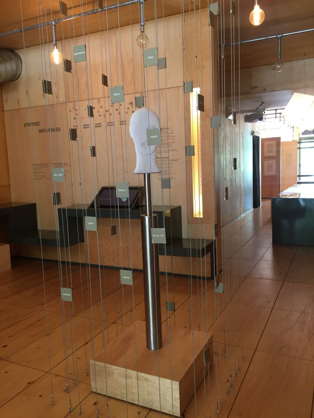 A short film documenting the museum project at the end of the exhibit includes a couple people bemoaning the lack of interest in Plato in Athens. If there were anywhere else, one local says in so many words, they’d have made a whole production of Plato. Why not here? Without any public support, the community went ahead and put together a pretty decent display, including virtual walkthroughs of the grounds and these short films on the cave and the Symposium. There’s a whole wall at the end that is a graphic of famous books on Plato, including many that I know well–Terence Irwin, M.M. McCabe, Gregory Vlastos, Debra Nails, Leo Strauss among many others. Maybe this is a new thing to aspire to.