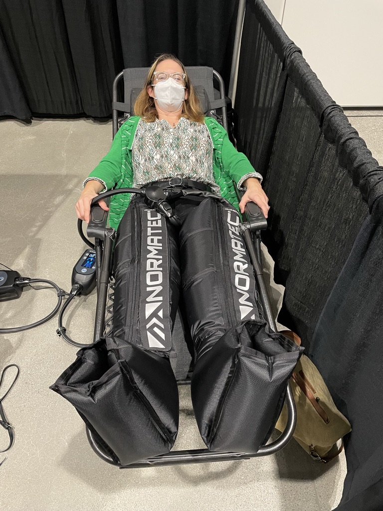 My highlight of the expo was the compression legs, which I paid $5 to relax in for five minutes. I could really use them now, post-race, but it was very nice to sit in pre-race.