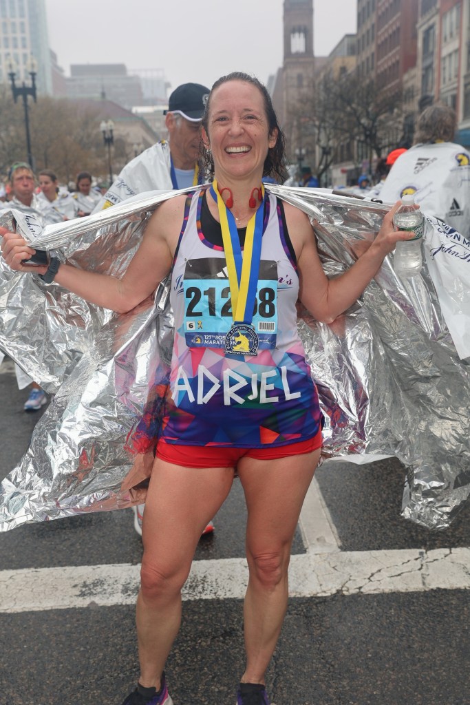 I went back and showered and then met up with a philosophy friend whom I also talked into coming out to cheer for me since she has lived in Boston for eight years or something and is about to leave and never went to watch the Marathon and now she knew someone running it. I’m glad she went because she ended up being the only one of the three people I knew who were cheering for me who saw me.