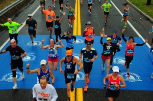 The start was a little anti-climactic. There isn’t a separate gun for each group. All of sudden, you are at the start line and then you are crossing and then you are running THE BOSTON MARATHON. It was a little unreal. People talk about the Boston Marathon as this lifetime goal, as an ideal, as something that exceeds mundane existence. But you know what? The Boston Marathon is a set of roads through eight towns in Massachusetts. The roads themselves are not magical or ideal. They are just roads. Realizing this made me have more belief that I could do it. For the first miles, I didn’t hold back too much but I also didn’t push. I started with nuun in two small water bottles and so I skipped the first water stations which were a little hectic. I was right where I wanted to be by mile 7. The crowds were amazing all the way along. I knew the family of a friend was looking out for me in the first several miles so I was looking out for them, but then at one point a woman yelled my name, which I had spelled in medical tape on my singlet, and I was like, hey, that’s me, and she looked at me very strangely and I realized we were miscommunicating. She thought she was just saying my name and I thought she was looking for me. I was a little embarassed imagining her recounting the story to other people.