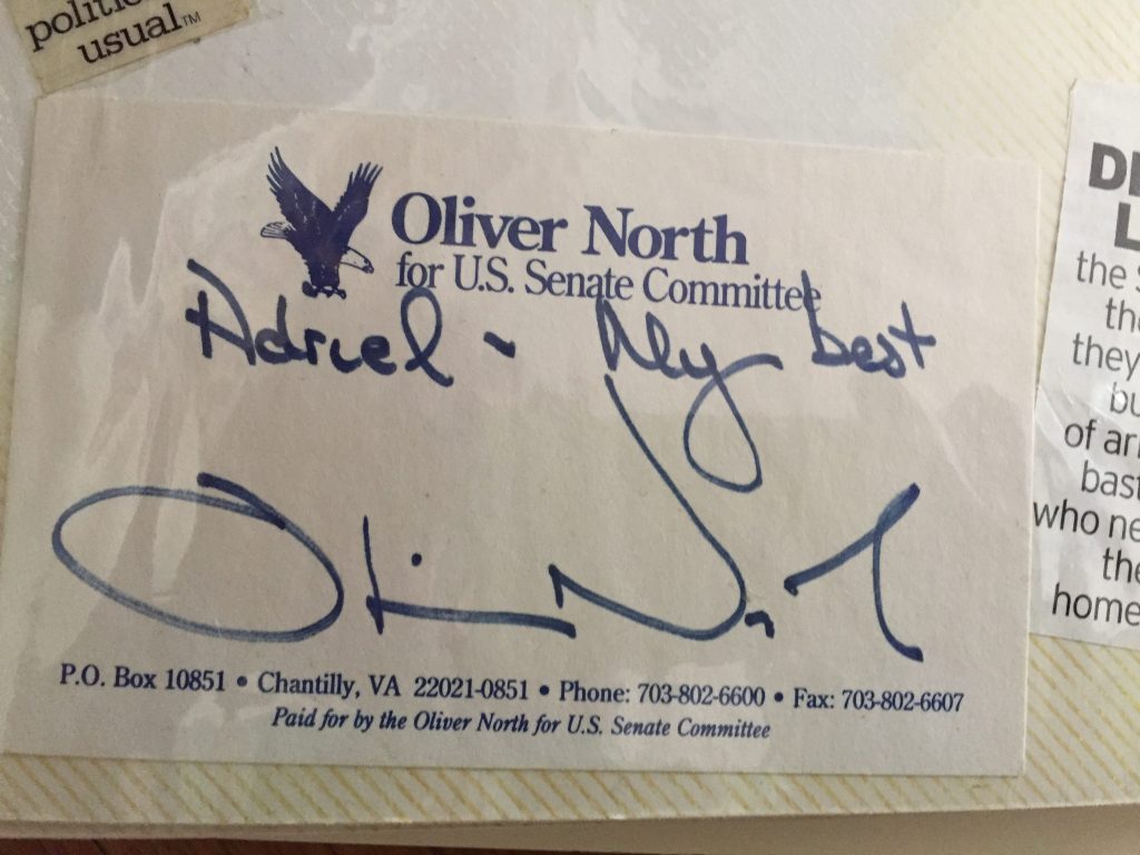 Yesterday I was going through some old papers, looking for my autograph from Ollie North on the occasion of his ascendancy to the presidency of the National Rifle Association. And I found a note that my ninth grade English teacher wrote to me when I graduated from high school (see photo above). Mr. Bender had a sign over the chalkboard in his classroom that read “Homer Nods.” Homer nods, Mr. Bender would explain to every new class of girls at the Philadelphia High School for Girls, means that even great geniuses, literary and otherwise, make mistakes. My senior year I was selected as one of the graduates to speak at graduation on the basis of my submitted speech I called “Homer nods.” I can’t even remember what it was about now. Probably something about humility amidst our capacity for greatness.